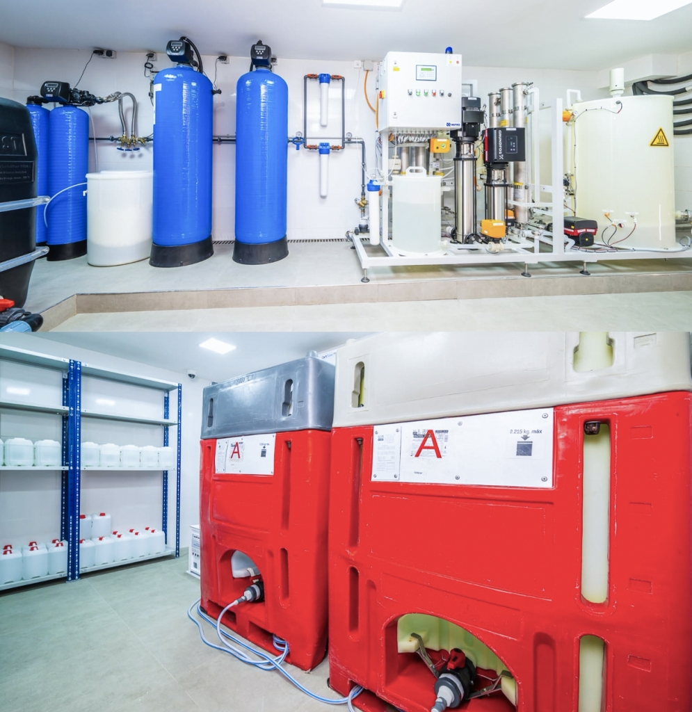 Conformément à la règlementation européenne ; le traitement d’eau est une double osmose avec stérilisation chaleur de la marque NIPRO permettant d’avoir une eau ultra pure.
